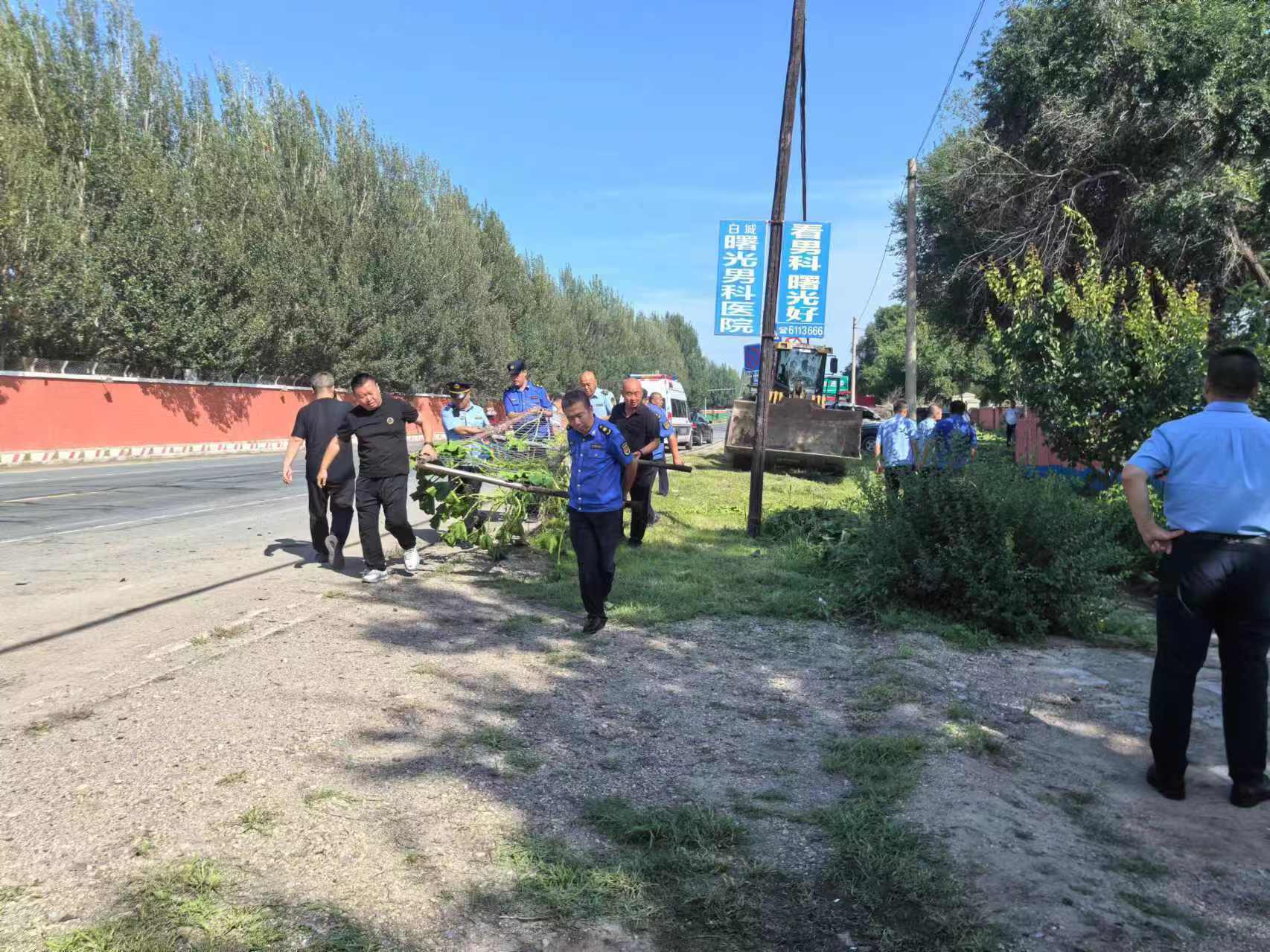 此次专项行动,由交通运输局齐宝坤局长和城管局孙乃岩局长一线指挥,各单位一把手各司其职,以302国道平台镇为中心,向白城方向15公里路段进行全面清理和整顿。清理整顿中我们采用宣传和教育相结合方式,向沿线村民讲解交通安全法律法规,违法占用公路的危害,进一步提高了人民群众交通安全意识。这次专项行动中各单位本着认真负责的态度,彻底清除路堵路障。交通运输综合行政执法支队出动了执法人员15人,执法车辆3辆;城管部门出动执法人员28人,执法车辆5辆;公路管理处协调养护公司出动铲车3辆、自卸货车3辆。