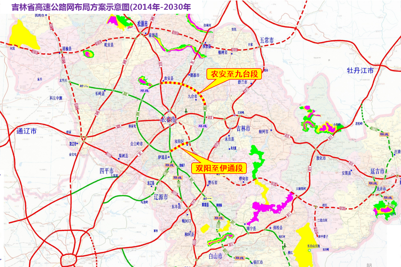 长春经济圈环线高速公路农安至九台段、双阳至伊通段是长春经济圈环线高速公路中的一部分,路线总长124.841km。