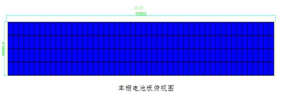 选择停车区北侧小车停车位,光伏组件采用固定式支架安装,组件安装角度为25°,正南正北方向布置。设置300平米车棚有效利用面积,光伏板尺寸为:1650mm*992mm,每块平铺占地面积为1.64平米,每块发电量270W,共用200块,总发电量54KW。