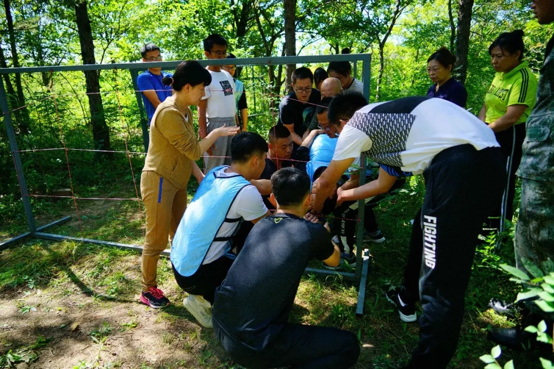 训练开始前,教练将参训职工分成8支队伍,通过一系列轻松愉快的互动活动,让大家迅速建立起相互信任的和谐团队氛围。紧接着,各分队通过竞选队长、起队名、编排队歌等环节,迅速诞生出“雄鹰”、“山竹”、“神锋”等队伍,大家在象征着各队荣誉的旗帜上,写上队伍的名称、队标和口号,拓展训练活动正式开始。