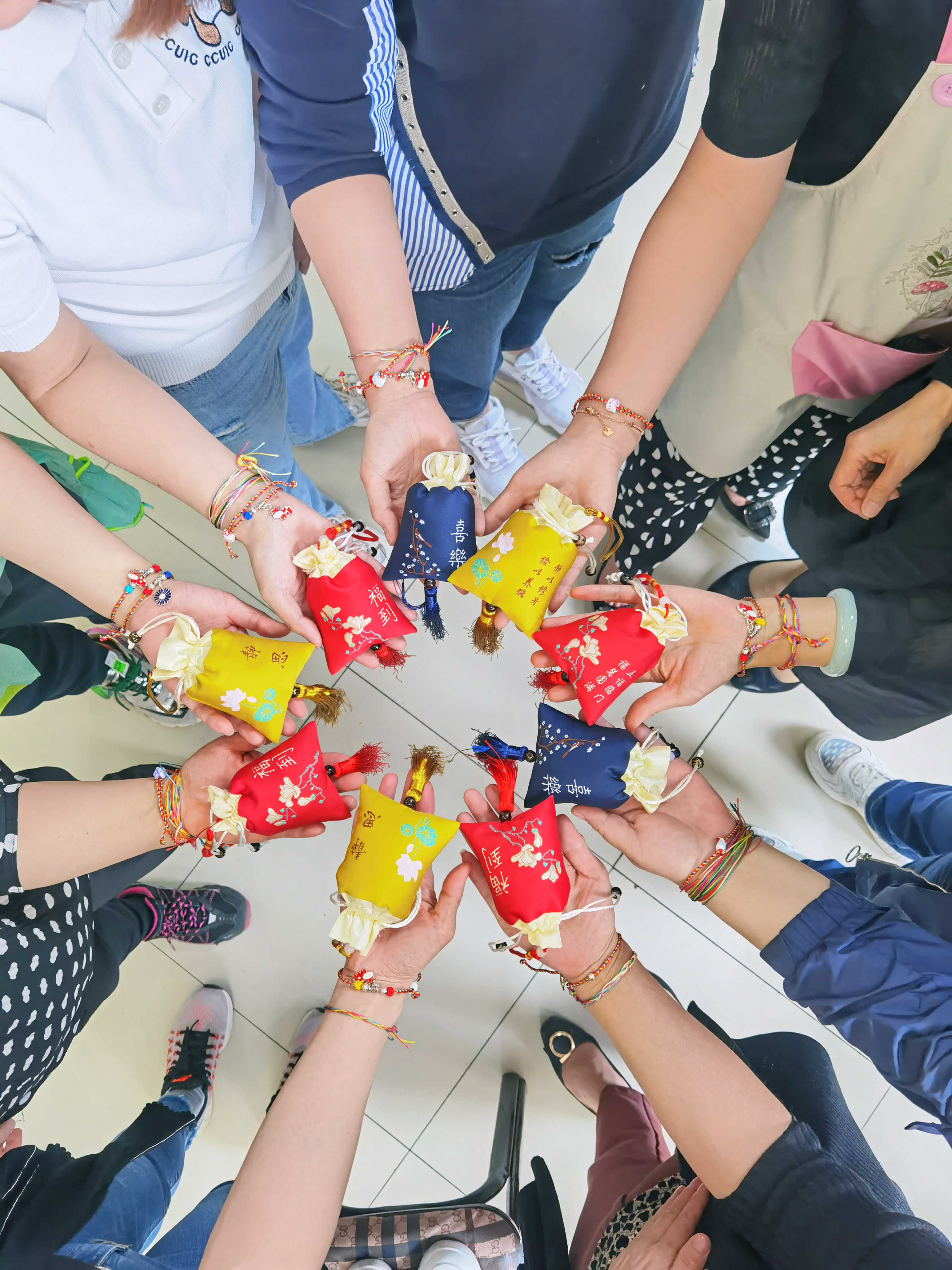 根据习俗,人们一般在端午节佩戴五色丝线以辟邪,兼有祈福纳吉的美好寓意。利用等待粽子出锅的间隙,心灵手巧的女职工们又共同编织起五彩绳。大家互相讨教,边学边做,兴致盎然,做得有模有样。检养中心十分用心地准备了香囊和五彩绳,为活动助兴的同时,也令大家感受到中心职工的浓浓情谊。