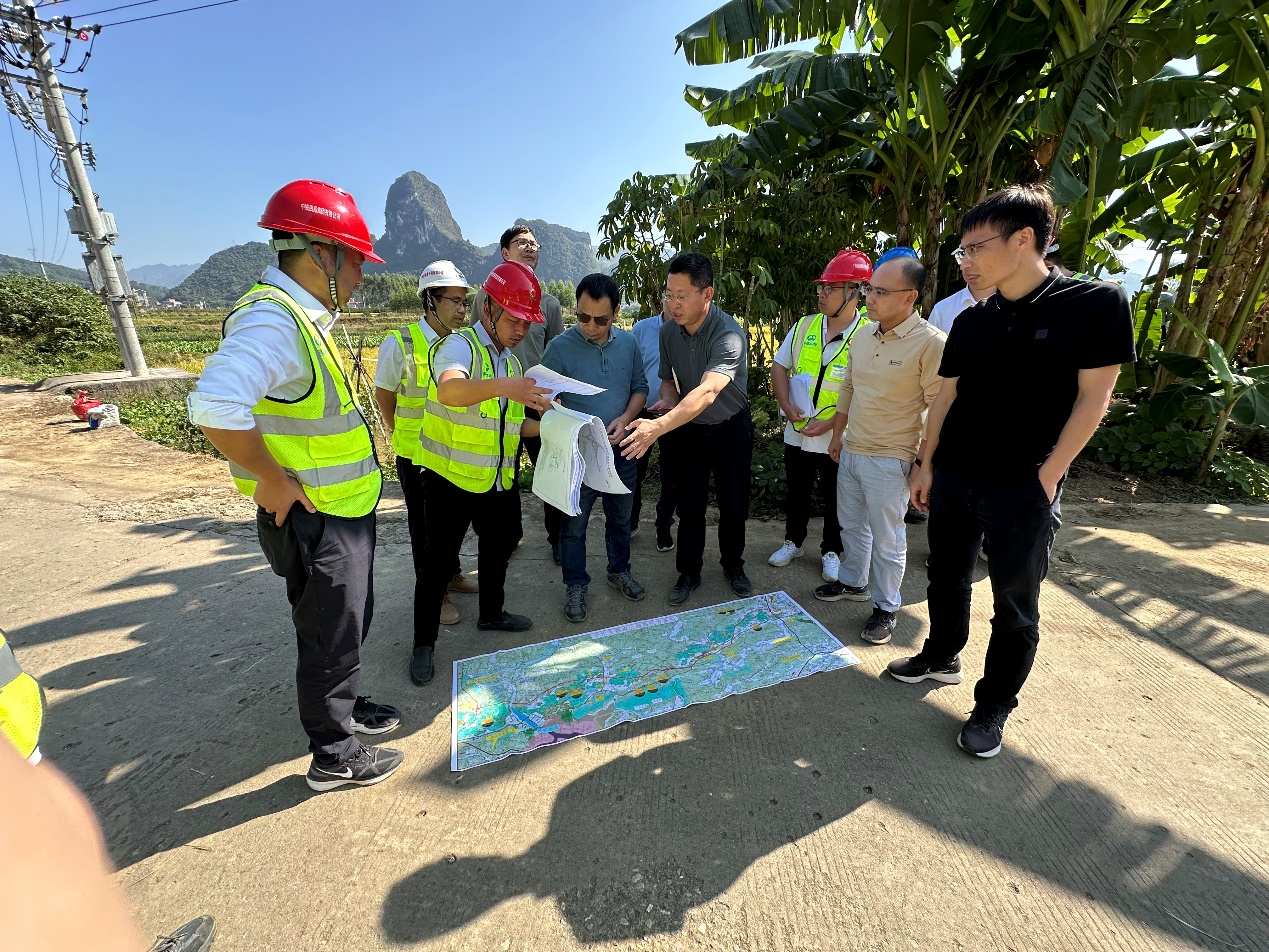 设计回溯工作部署,结合广西交投集团公司“担当进取创新创优”“三强六保”工作要求,深入了解高速公路项目设计回溯工作进展及建设过程中存在的问题等情况。近日,由广西交投集团公司副总工程师、总工程师办公室主任秦育彬带队,总工程师办公室、工程管理部及高投公司相关人员组成检查组,赴阳朔至荔浦公路(阳鹿路与贺巴路荔浦连线)、全州(湘桂界)至容县(粤桂界)并行线平乐至荔浦公路项目,开展2024年度高速公路项目设计回溯工作专项检查,总结经验和不足,进一步提高精细化设计水平,确保高质量完成设计回溯工作。