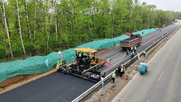 5月20日,G331项目吉林段01标二工区再传捷报——完成沥青混凝土路面试验段施工!在全线率先进行沥青路面施工,为项目建设按下“加速键”!