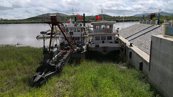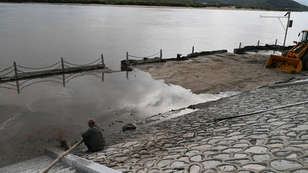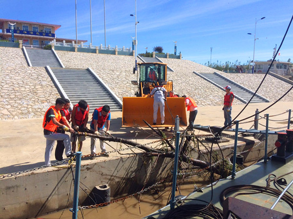 8月28日-9月3日,洪水逐渐消退,水位降至码头面层以下,防川分局根据实时水位调整船舶停泊位置,将漂浮平台调遣回码头前沿停放,将航政6号从船台滑道调遣至船坞停放,将吉吸2号、吉拖304顺水摆放正位,全面系缆,将吉航拖6号、吉航吸5号适当调整,防止水域船舶发生搁浅。洪水过后,码头淤泥厚度达到半米以上,分局组织力量全力做好洪水恢复工作,全员“参战”,利用自有的电动水泵配合铲车冲洗码头淤泥,历时16小时清理淤泥350