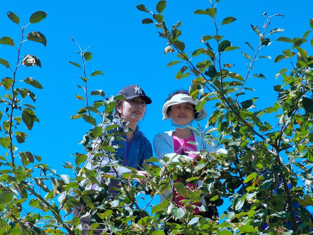 碧空蓝天下,党员干部和职工忙着采收、晒秋,大家呼吸着大自然的清新空气,欣赏着丰收美景,体验着采摘的欢乐,品尝着自己的劳动果实,共庆丰收的喜悦,园区里不时传来朗朗笑声……