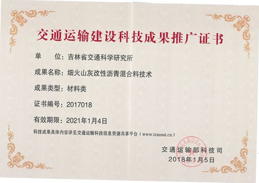 交通运输部科技成果推广目录:填料型火山灰沥青改性剂