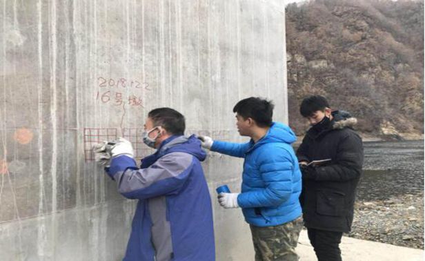 检测人员对桥梁进行无损性测试