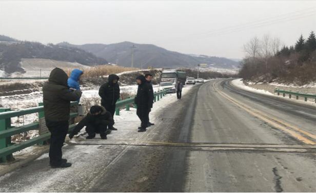 本次检测桥梁所处地区位于吉林省东部山区,水系众多、地形复杂,加之检测时间正值东北深冬时节,山区平均气温在-20℃以下,平均积雪厚度可达80cm以上。极寒气候不仅加大了桥梁检测工作的难度,也对检测人员的体力和毅力提出了极大挑战。