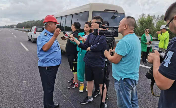 省交通宣传中心记者崔雪楠在长吉高速公路现场采访
