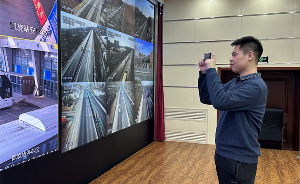 记者拍摄春运客运站视频监控