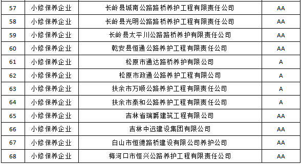 吉林省公路管理局2022年度普通干线公路小修保养企业信用评价结果公示