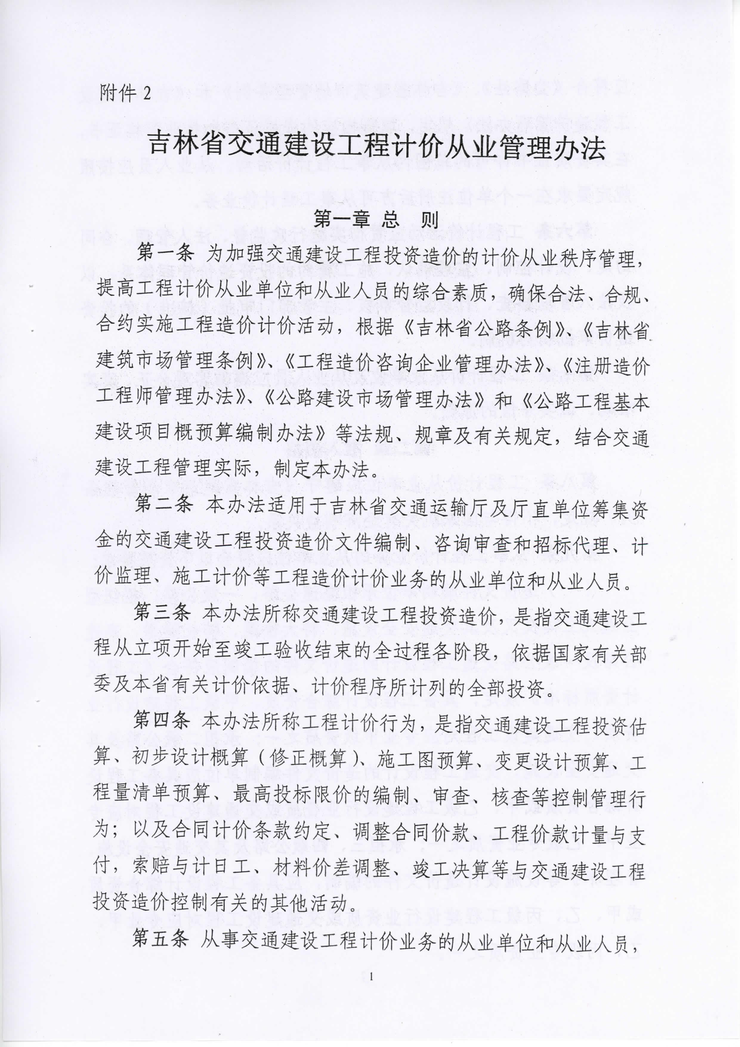 吉林省交通建设工程计价从业管理办法