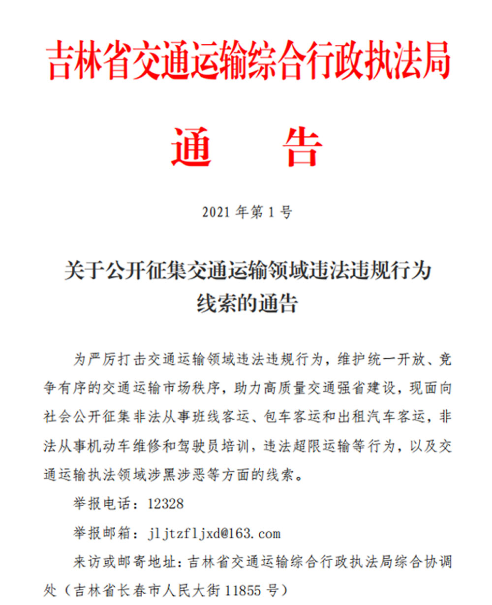 关于公开征集交通运输领域违法违规行为线索的通告