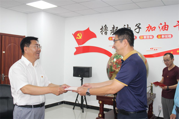宣誓后,李维彬代表支部向第三季度入党的10名党员赠送“政治生日”贺卡。贺卡承载了党支部的祝福、期望,把党组织的关心温暖传递到党员心中,提醒和激励党员牢记党员身份,忠实履行党员职责。
