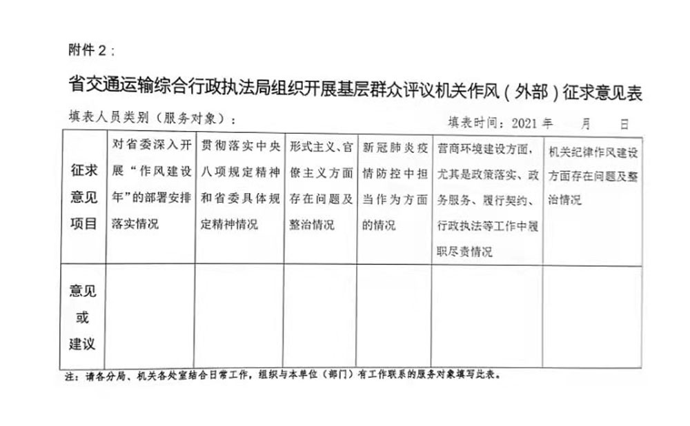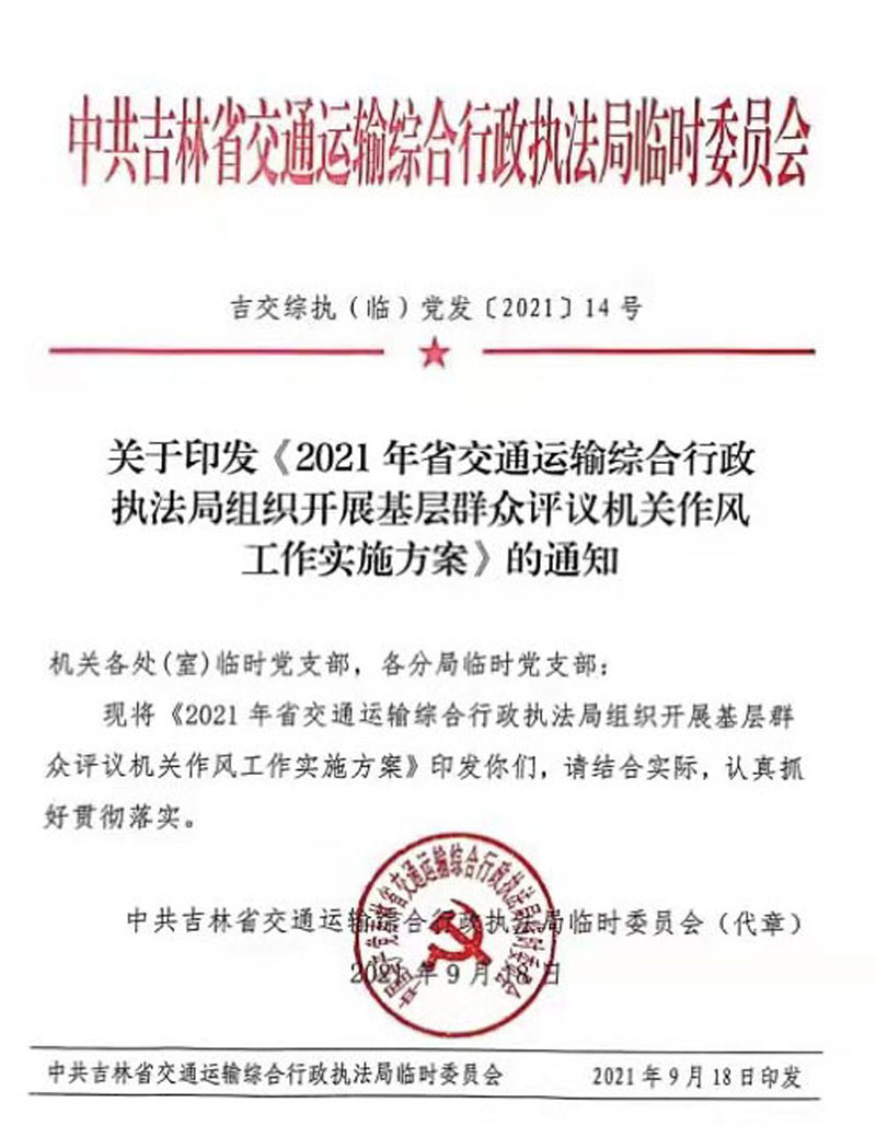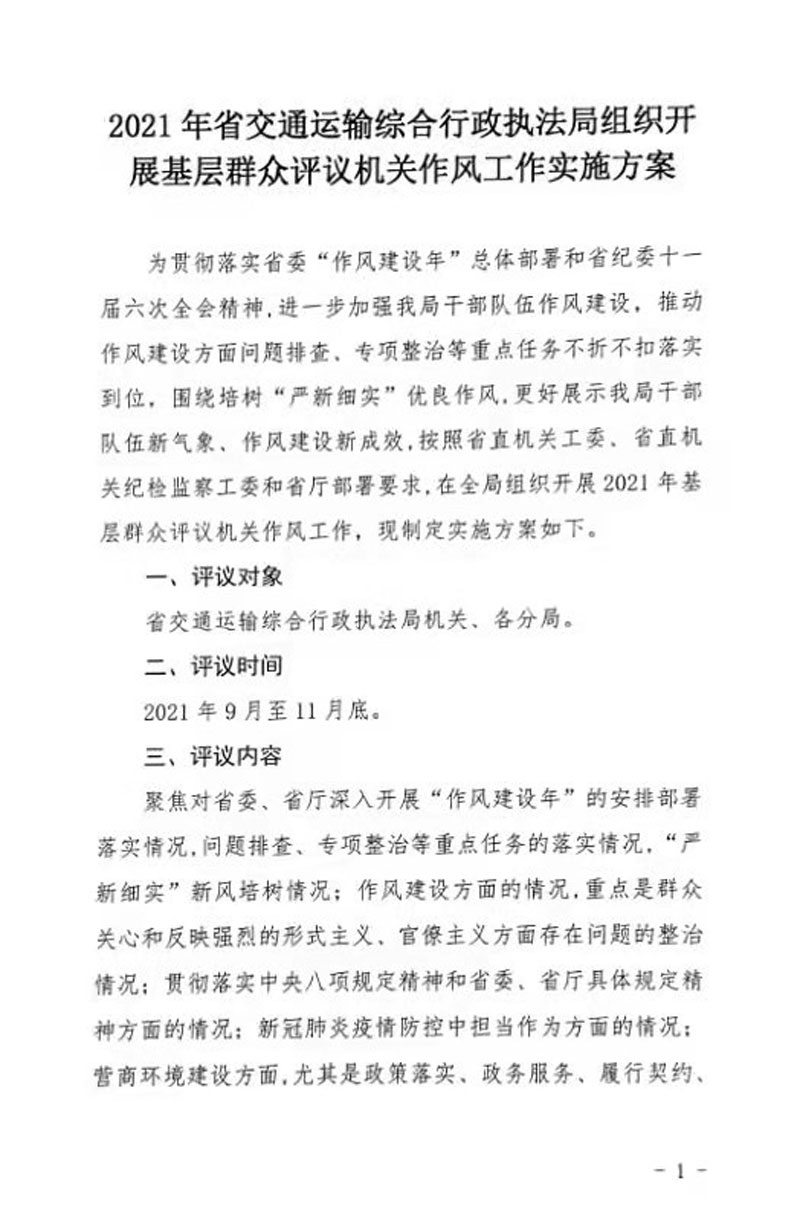 关于印发《2021年省交通运输综合行政执法局组织开展基层群众评议机关作风工作实施方案》的通知