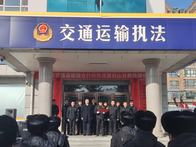 2025 年 1 月 8 日,吉林省交通运输综合行政执法局白山分局举行揭牌仪式,原靖宇分局正式更名为白山分局。此次揭牌标志着白山地区交通执法工作迈入新阶段,在新雪季的交通运输保障中肩负起重要使命。