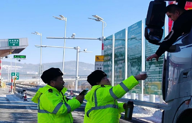 为助力冰雪旅游和春运期间安全工作,靖宇分局白山大队灵活调整高速站口执勤时间和频次,合理调配执法人员,在收费站广场执勤同时积极为省内外游客和过往司机提供暖心服务,递上一杯热水,送上一份温暖。