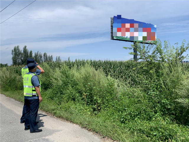 清理工作着手进行阶段,分局执法人员面对各类困难,都集思广益,积极采取有效方式化解。如有的广告所有人对广告的测量距离提出了异议,执法人员便在广告所有人当场见证的情况下,重新进行了测量,消除了当事人的异议。如个别违法广告无法找到所有人,执法人员通过查找土地所有人、联系当地村干部、拨打广告上招商电话等方式进行最终确定。在保持非法广告整治力度的同时注重执法温度。8月17日,梅河口分局东梅大队在清理一处坐落于收费站匝道处的广告牌时,因其四周种满玉米,考虑到立即拆除会损害庄稼,在违法行为人表示愿意拆除的情况下,执法人员让其签订了承诺书,承诺在2022年11月底前自行无条件拆除该违法建筑,这一暖心执法行为,在推进了非法广告整治工作的同时,也得到了沿线村民的理解与赞许。
