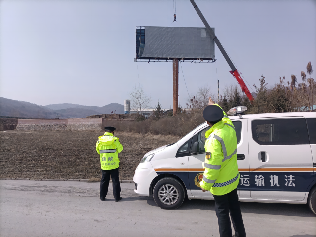 通化分局英额布执法大队于3月17日、3月21日联合辖区高速交警、吉高集团通化分公司养护部门,依法监督产权人对辖区内3处擎天柱广告设施进行自行拆除,完成了全年非法广告设施30%拆除率。