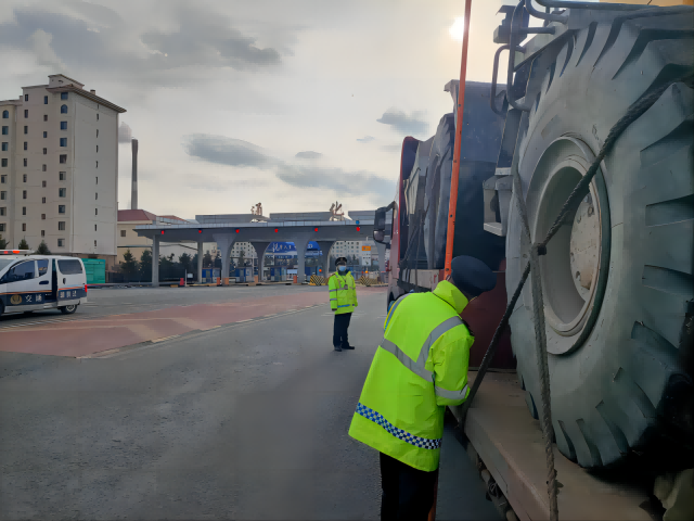 11月21日,通化分局英额布执法大队在通化西收费广场执法时发现有一辆大件运输车辆试图驶入高速公路。执法人员依法对大件车辆进行检查,要求当事人提供《超限运输车辆通行证》,当事人却无法提供。