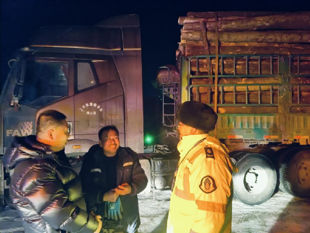 “天气冷了,最近雪天偏多,注意路滑!千万不要超载啊!生命最宝贵!”这是通化分局英额布执法大队现场执法人员与司机的日常对话。