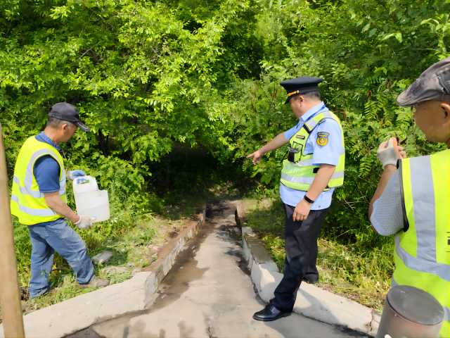 执法人员按照“深入细致排查,及时消除隐患”的原则,在辖区全域加大巡查力度,对属段高速公路基础设施进行逐一排查,提前摸排重点风险隐患点。在巡查过程中,发现鹤大高速公路有一处边沟边缘出现破损、边沟出现淤堵,执法人员立即联系吉高集团养护工区施工作业人员安排维修护理,并实行定点实时监管,确保该隐患快速清除。执法人员还到各自辖区养护工区、收费站检查防汛物资储备情况,要求养护工区、收费站应急抢险队伍保持战备状态,备足应急设备和物资,完善工作预案,有力有效应对汛期突发事件。