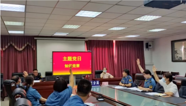 举措四:开展“党代会知识竞赛”主题党日活动。参赛选手分成两队,参赛选手积极踊跃答题,观众加油鼓劲,现场气氛高涨,激发了党员学习党代会精神的新活力。