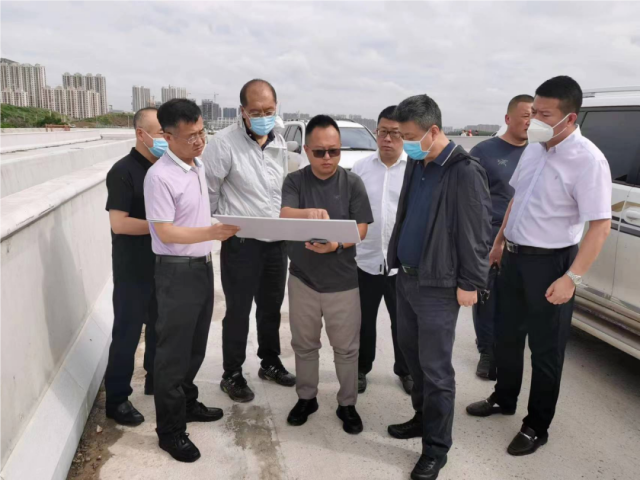 张鹏军踏查了项目沿线互通立交桥桥面铺装、收费站雨棚安装、路面基层施工、高架桥伸缩缝安装等施工现场,听取了项目建设单位关于工程整体情况的汇报,详细了解各分项工程的进展情况和存在的问题,对建设项目下一步工作提出了要求。他强调,一要进一步加大施工力量投入。多点并进,抢抓工期保年度目标;特别是项目高架桥占比较大,全线桥梁伸缩缝数量较多,要重点抓好这类影响工程进度的关键工程。二要时刻抓好安全生产不放松。当前,项目进入最后的冲刺阶段,安全生产尤为重要,不容忽视,特别要加强高空作业的安全生产管理。三要高度重视工程质量。质量是工程的生命线,抢抓工期的前提要保质保量,要抓好质量管理,打造品质工程。四要加强同高速公路运营单位的沟通。做好机电工程施工并网的相关工作,为项目下一步开通运营打好基础。五要进一步加强疫情防控工作。要高度重视当前疫情形势,抓好疫情防控措施的落实,做好施工人员的管控。六要做好农民工工资保障工作。坚决杜绝拖欠农民工工资的现象发生,维护社会稳定。